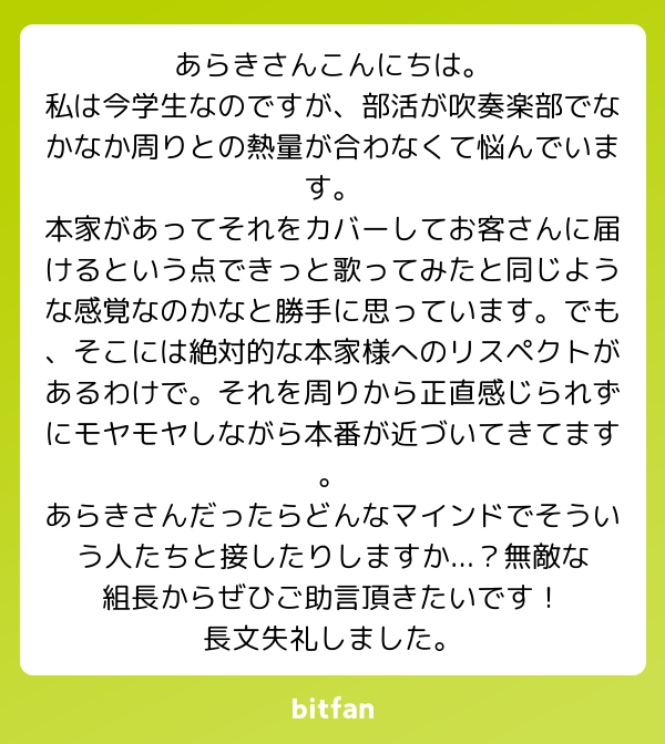 質問 匿名希望 2025/10/22 15:47 これは難しいラインなんだが、 全員が同じ熱量を持つことなんてことはほぼ無い リスペクトとか本気さって、強要した瞬間に薄っぺらくなっちゃうので 自分の中でちゃんと大事にしていればそれで充分だと思う つまり 他はどう、なのではなく、 自分は無敵だ・・・嗚呼・・・・ というマインドが大事だ 質問・リクエストを送る URLをコピーする 報告する